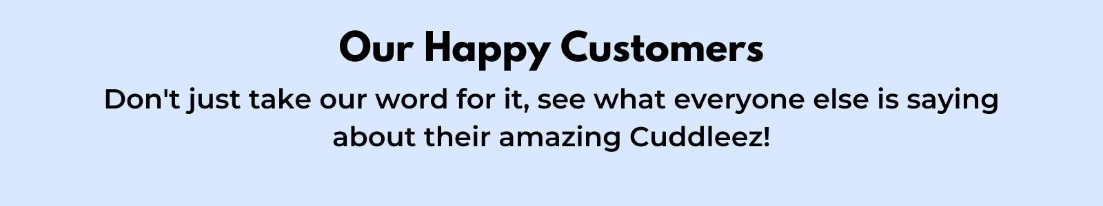 100% satisfaction guarantee or your money back. We’re so sure you’ll love your Cuddleez that we even offer a 60 day free refund policy. But we know you’re not going to need it.